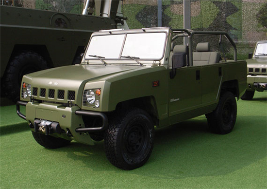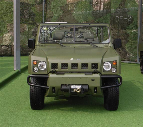 2007年8月2日,北汽控股公司在位于北京市順義區(qū)的北京汽車制造廠有限公司隆重舉行慶祝建軍80周年暨北京·勇士下線儀式。北汽勇士BJ2022型4×4軍用越野車自2007年列裝部隊以來,“勇士”越野車作為我軍第二代軍用指揮車,常年活躍在演訓(xùn)場上和邊防線上。2008年、2009年北汽勇士軍用車參加并圓滿完成汶川地震搶險,打擊暴恐勢力等多次重要軍事行動。“勇士”是由北京汽車制造廠有限公司自主開發(fā)的,擁有完全自主知識產(chǎn)權(quán)的中國21世紀(jì)0.5噸/0.75噸級越野車!坝率俊蓖獠吭煨褪窃谘芯苛藲W、美、日三大流派越野車造型發(fā)展趨勢的基礎(chǔ)上,結(jié)合中國文化特色和中國越野車的特點而設(shè)計的,具有原創(chuàng)性。