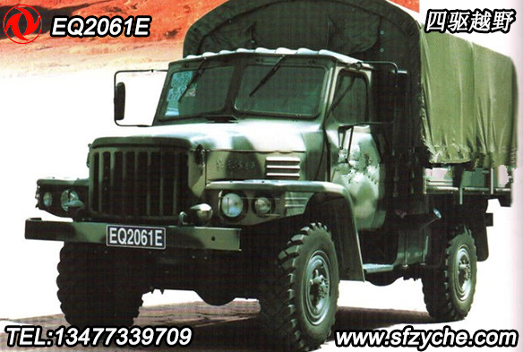 EQ2061E是東風(fēng)汽車公司在6×6型EQ2081E(EQ240)基礎(chǔ)上開發(fā)出的。采用相同的100kW直列六缸水冷汽油發(fā)動機(jī)后,整車動力性有較大改善,最高車速90km/h,0~60 km/h加速時間為25秒。