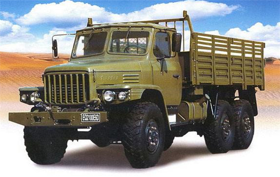 該噸級有兩種車型:東風(fēng)6×6型EQ2100E6D長頭越野車和EQ2102平頭越野車。