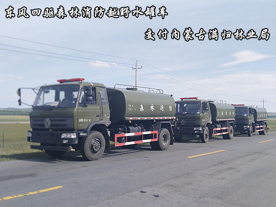 滿歸林業(yè)局采購的四驅(qū)水罐車詳細配置如下:東風4×4越野SCS5183GPSEQ型四驅(qū)綠化噴灑車:采用東風EQ2180GD5DJ型越野汽車底盤,東風153寬體駕駛室,4×4驅(qū)動,康明斯ISB190 50國五發(fā)動機,六檔變速箱,東風商用車橋,前驅(qū)動橋3.8噸,后橋10噸,10.00R20輪胎,軸距4500mm,電動玻璃,方向助力,斷氣剎,ABS。罐體采用優(yōu)質(zhì)碳鋼Q235板材,板材厚度4mm,罐體容積11.1立方,安裝取力器,威龍大功率水泵可泵進泵出,后置工作平臺帶水炮射程25米,消防栓接口左右各一個,駕駛室頂部安裝長條警燈帶喊話器,全車顏色軍綠,兩側(cè)噴涂白色森林消防字樣。