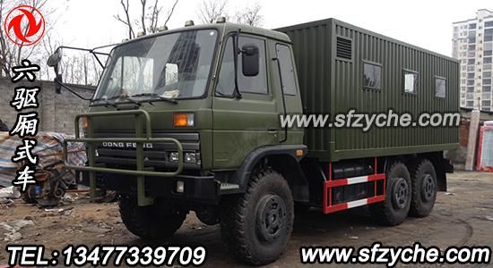 東風(fēng)軍用廂式越野卡車在湖北隨州正式下線,送往新疆喀什征戰(zhàn)沙場(chǎng),六驅(qū)越野廂式車采用東風(fēng)六驅(qū)軍卡底盤EQ2162GS,發(fā)動(dòng)機(jī)采用康明斯190馬力中冷增壓,東風(fēng)軍用分動(dòng)箱,東風(fēng)6擋變速箱,東風(fēng)軍工車橋,全部為軍檢合格產(chǎn)品,采用12.5R20型子午線大花紋沙漠越野胎,車廂整體采用1.5mm瓦楞板,全鋼骨架設(shè)計(jì),更加安全牢固,貨箱尺寸5100*2500*2100.東風(fēng)越野廂式卡車圖片如下: