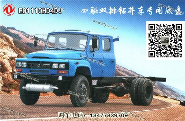 東風(fēng)尖頭四驅(qū)雙排越野鉆井車詳細(xì)配置:采用東風(fēng)EQ1110HD4DJ型原廠四驅(qū)越野底盤,尖頭雙排座駕駛室,玉柴160馬力正宗國四發(fā)動機(jī),五檔變速箱,3.5噸前驅(qū)動橋,后十噸東風(fēng)德納車橋,232mm(6+5)雙大粱,輪胎為9.00R20鋼絲胎。