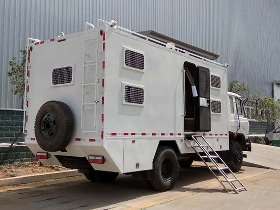 三、東風(fēng)四驅(qū)越野宿營(yíng)車, 4驅(qū)越野宿營(yíng)車用途:適用公安、特警、公安、邊防、衛(wèi)生、交通、礦山、地質(zhì)、軍隊(duì)等部門]長(zhǎng)期野外作業(yè)、勘察、救援、搶險(xiǎn)、救災(zāi)等宿營(yíng)用,箱體空間利用大化。內(nèi)部配置:配備前儲(chǔ)物柜、后儲(chǔ)物柜、液晶電視機(jī)應(yīng)急燈、頂燈、頂置空調(diào)、床墊、被褥等。選裝配備8組豪華折疊臥鋪、未鋪上下梯、安全保險(xiǎn)帶、電源插口等,細(xì)節(jié)精致。外置燃油加熱器、頂護(hù)欄、前爬梯、隱藏抽拉梯、專用房車門、專用玻璃滑窗、警示燈等。