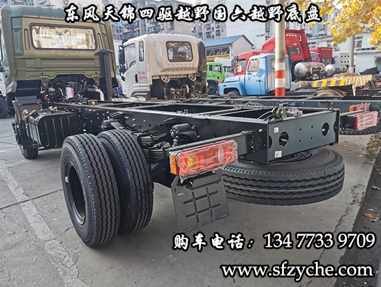 國(guó)六排放東風(fēng)天錦四驅(qū)越野底盤正式下線了,東風(fēng)天錦4*4驅(qū)動(dòng)國(guó)六越野卡車底盤采用:東風(fēng)天錦D530一排半駕駛室,4×4驅(qū)動(dòng),康明斯B6.2NS6B210國(guó)六發(fā)動(dòng)機(jī)210馬力,韶齒六檔變速箱,東風(fēng)商用車橋,前驅(qū)動(dòng)橋3.8噸,后橋10噸,10.00R20輪胎,軸距4500mm/4700mm,電動(dòng)玻璃,方向助力,斷氣剎,ABS,大燈自動(dòng)調(diào)節(jié),自動(dòng)調(diào)整臂,選裝原廠空調(diào)。