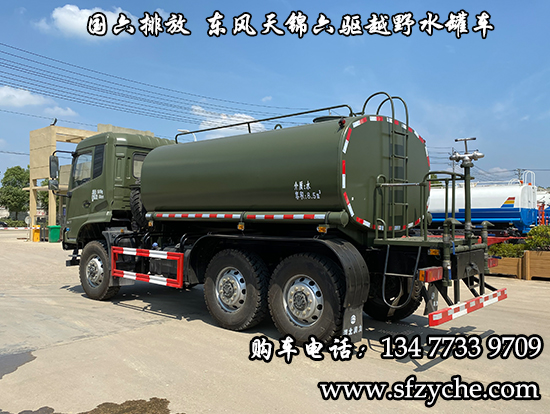 國六排放潤知星牌SCS5165GPSDFV6型六驅(qū)越野綠化噴灑車_東風(fēng)天錦六驅(qū)森林消防水罐車_六驅(qū)園林綠化灑水車主要用于城鄉(xiāng)園林綠化灑水,噴藥等;主要裝置為水罐及泵.隨底盤選裝駕駛室.罐體有效容積8.7立方米.罐體外形尺寸(長×長軸×短軸)(mm) 4200×2350×1300.側(cè)、后防護(hù)材料為Q235B,側(cè)、后防護(hù)與車架焊接連接.后部防護(hù)裝置斷面尺寸(寬×高)50×120(mm),后部防護(hù)離地高度:460mm.ABS型號/生產(chǎn)廠家:3631010-C2000/東科克諾爾商用車制動系統(tǒng)(十堰)有限公司。東風(fēng)天錦六驅(qū)越野綠化灑水車上裝配置:罐體采用優(yōu)質(zhì)碳鋼QB235板材,板材厚度4mm,罐體容積8.7立方,安裝取力器,60-90威龍大功率水泵可泵進(jìn)泵出,后置工作平臺帶水炮射程25米,消防栓接口左右各一個(gè),選裝駕駛室頂部安裝長條警燈帶喊話器,全車顏色軍綠,兩側(cè)噴涂白色森林消防字樣等。