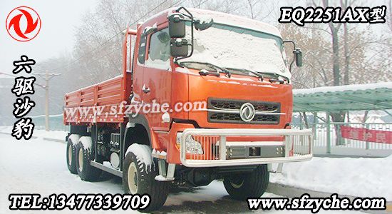 東風(fēng)牌EQ2251AX型沙漠越野車(chē)配置:采用東風(fēng)新款D310平頂單臥駕駛室,發(fā)動(dòng)機(jī):康明斯375馬力國(guó)四發(fā)動(dòng)機(jī) 直列增壓中冷六缸水冷柴油機(jī) ISLe375 40;北方奔馳同步器型9擋箱 9T-160 Φ430mm,膜片彈簧拉式離合器,7T前橋,10T 重慶大江雙級(jí)減速雙后橋 14.00-20輪胎 (選裝20-20 沙漠胎)軸距3800+1400 鋼板彈簧片數(shù)9/10,油箱350L,貨箱尺寸:5720×2294×800mm,整車(chē)外形尺寸:8470×2500,2700×3520,動(dòng)力轉(zhuǎn)向。如需了解更多東風(fēng)六驅(qū)沙漠車(chē)圖片,東風(fēng)六驅(qū)沙漠車(chē)價(jià)格,東風(fēng)六驅(qū)沙漠車(chē)參數(shù),請(qǐng)立即撥打銷(xiāo)售熱線(xiàn):13477339709 李經(jīng)理 0722-7053060 業(yè)務(wù)QQ:530233927,東風(fēng)越野卡車(chē)網(wǎng)址:www.anuorz.com
