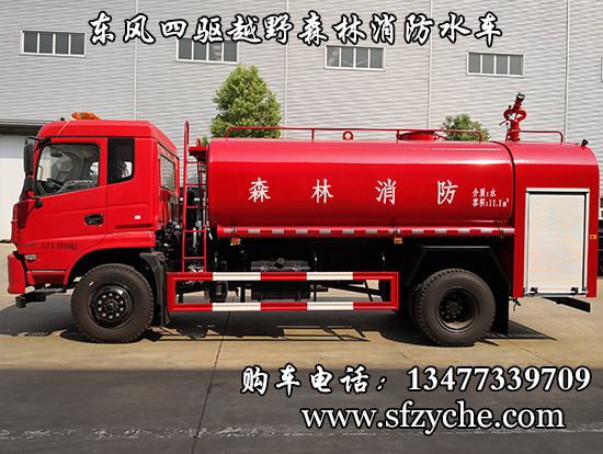 東風(fēng)四驅(qū)越野森林消防水罐車(chē)_東風(fēng)11.1噸四驅(qū)消防水車(chē)_國(guó)五四驅(qū)越野森林滅火水車(chē)_東風(fēng)4×4越野SCS5183GPSEQ型四驅(qū)綠化噴灑車(chē)簡(jiǎn)介:采用東風(fēng)EQ2180GD5DJ型越野汽車(chē)底盤(pán),東風(fēng)153寬體駕駛室(選裝D913新款駕駛室),4×4驅(qū)動(dòng),康明斯ISB190 50國(guó)五發(fā)動(dòng)機(jī),六檔變速箱,東風(fēng)商用車(chē)橋,前驅(qū)動(dòng)橋3.8噸,后橋10噸,10.00R20輪胎,軸距4500mm,電動(dòng)玻璃,方向助力,斷氣剎,ABS。罐體采用優(yōu)質(zhì)碳鋼Q235板材,板材厚度4mm,罐體容積11.1立方,安裝夾心取力器,后置泵箱,消防栓接口左右各一個(gè),消防炮采用PS30-50D消防水炮,流量40L/S/1.0MPa 水射程:≥50m,消防泵采用常壓消防泵型號(hào):CB10/40車(chē)用消防泵,流量:40L/s,壓力:1.0MPa,駕駛室頂部安裝長(zhǎng)條警燈帶喊話(huà)器,全車(chē)顏色橘紅,兩側(cè)噴涂白色森林消防字樣。