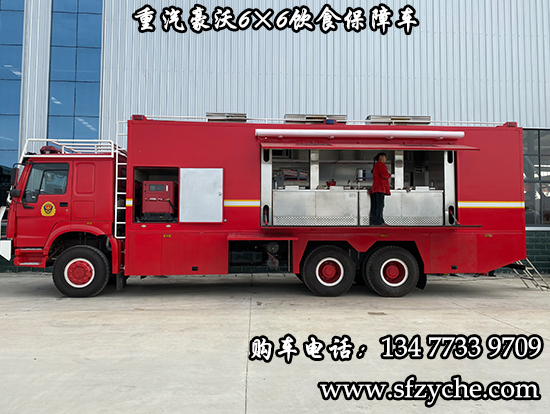 重汽豪沃六驅(qū)越野消防飲食保障車功能配置:是采用二類底盤改裝而成,實現(xiàn)移動式后廚功能,可按照用戶要求布局安裝,帶天窗,不銹鋼爬梯,護欄,凈水系統(tǒng),污水系統(tǒng),增壓泵,蒸飯車,雙眼灶臺,不銹鋼排煙系統(tǒng),冷柜,不銹鋼操作臺,菜架,洗手池等裝備。廂體采用內(nèi)不銹鋼,外玻璃缸復(fù)合工藝制成,底板為鋁花紋防滑板,實現(xiàn)走到哪里,就把熱菜熱飯做到哪里的效果。專業(yè)軍用餐車。