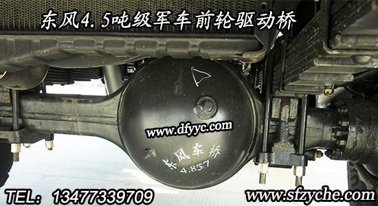 東風(fēng)六驅(qū)平頭軍車前橋采用東風(fēng)德納4.5噸級前置驅(qū)動車橋,這種采用三肖式等速萬向節(jié)式的軍用驅(qū)動前橋主要用于以下車型:早期的東風(fēng)3.5噸級六驅(qū)尖頭軍車EQ245、EQ2100E、EQ2100E6D等三種尖頭六驅(qū)軍車,后期主要應(yīng)用在東風(fēng)平頭軍車:EQ2102、EQ2162、DFS5160TSML型六驅(qū)軍車上。