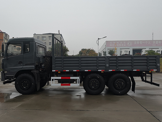 東風(fēng)新款國五六驅(qū)越野貨車配置簡介:采用東風(fēng)EQ2220GD5DJ型越野汽車底盤,東風(fēng)D913豪華駕駛室,6×6驅(qū)動,康明斯ISB190 50國五發(fā)動機,六檔變速箱,標(biāo)配315/80R22.5 20PR可換為12.5R20真空越野輪胎,軸距3500+1250mm,加厚雙層大梁,電動玻璃,方向助力,斷氣剎,ABS,備胎一套,大箱長度5米,墻板高度600mm。