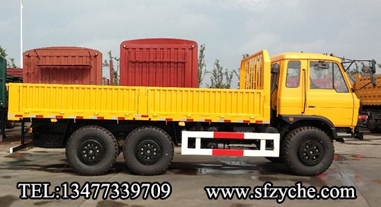 2、詳細配置:平頭一排半駕駛室,6*6驅(qū)動,康明斯190馬力,韶齒6檔變速箱,斷氣彈簧制動,貫通式中后驅(qū)動橋,12.5R20越野胎,軸距 3500+1250mm,加厚雙層大梁,貨箱4850mm,帶軍用保險杠。(新款仿天錦駕駛室加價1.5萬元)東風(fēng)越野卡車:www.anuorz.com
