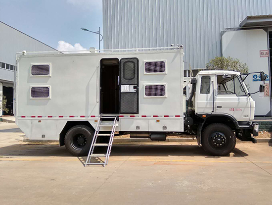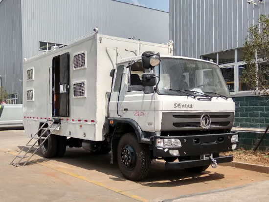三、東風四驅越野宿營車, 4驅越野宿營車用途:適用公安、特警、公安、邊防、衛(wèi)生、交通、礦山、地質、軍隊等部門]長期野外作業(yè)、勘察、救援、搶險、救災等宿營用,箱體空間利用大化。內(nèi)部配置:配備前儲物柜、后儲物柜、液晶電視機應急燈、頂燈、頂置空調、床墊、被褥等。選裝配備8組豪華折疊臥鋪、未鋪上下梯、安全保險帶、電源插口等,細節(jié)精致。外置燃油加熱器、頂護欄、前爬梯、隱藏抽拉梯、專用房車門、專用玻璃滑窗、警示燈等。