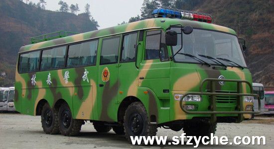 東風(fēng)六驅(qū)越野客車采用康明斯160馬力發(fā)動(dòng)機(jī),東風(fēng)5擋變速箱,整車長(zhǎng)8.4米,寬2.35米,高2930米,采用東風(fēng)EQ6840東風(fēng)特汽越野車專用底盤,最多座位數(shù)30座,采用11R18大花紋越野輪胎,整車迷彩色,選裝空調(diào)暖風(fēng)系統(tǒng)。