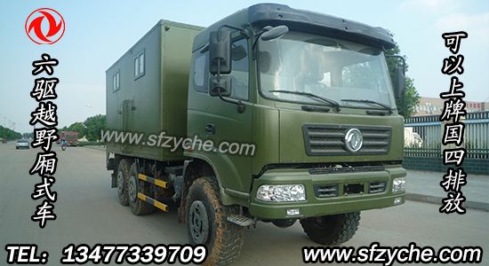 東風(fēng)六驅(qū)越野廂式車采用東風(fēng)越野卡車底盤DFS5160GLJ ,東風(fēng)153平頭一排半駕駛室,6*6驅(qū)動,康明斯185馬力,韶齒6檔變速箱,斷氣彈簧制動,貫通式中后驅(qū)動橋,12.5R20越野胎,軸距 3500+1250mm,加厚雙層大梁,貨箱4850mm,帶軍用保險杠。六驅(qū)越野廂式車,廂體根據(jù)用戶需要形式多樣,選裝多樣,可以選裝空調(diào)、側(cè)門、側(cè)窗、發(fā)動機(jī)、裙邊結(jié)構(gòu)等,是越野車友改裝簡易越野房車的最好選擇。銷售熱線:13477339709 李經(jīng)理 0722-7053060 業(yè)務(wù)QQ:530233927,東風(fēng)越野卡車網(wǎng)址:www.anuorz.com 東風(fēng)越野車:www.dfyyc.com