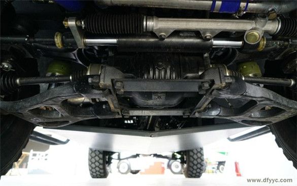 東風(fēng)四驅(qū)裝甲防雷反恐戰(zhàn)車的四驅(qū)系統(tǒng)全部國產(chǎn)化并非一步到位,經(jīng)過1代猛士基型車、標(biāo)準(zhǔn)2代猛士裝甲車、長(zhǎng)軸距2代猛士裝甲車近10年的發(fā)展積累而來。而這種通過引進(jìn)技術(shù)、分布國產(chǎn)、吸收改進(jìn),到全部國產(chǎn)化并掌握知識(shí)產(chǎn)權(quán)的發(fā)展模式,已經(jīng)成為包括東風(fēng)特種汽車在內(nèi)多家軍裝企業(yè)的生產(chǎn)模式。在一個(gè)較高的起點(diǎn)上,用更短時(shí)間研發(fā)全新裝備,已經(jīng)脫離單純的購買、組裝的非可持續(xù)發(fā)展模式。 上圖是東風(fēng)四驅(qū)裝甲防雷反恐戰(zhàn)車底盤特寫。 東風(fēng)四驅(qū)裝甲防雷反恐戰(zhàn)車采用實(shí)時(shí)四驅(qū)系統(tǒng),包括前后差速器以及分動(dòng)器和控制系統(tǒng)全部國產(chǎn)化。帶有自動(dòng)調(diào)節(jié)輪胎壓力的系統(tǒng),具備5萬公里行駛無故障能力。為了提升東風(fēng)四驅(qū)裝甲防雷反恐戰(zhàn)車通過性,加裝了中央差速鎖。